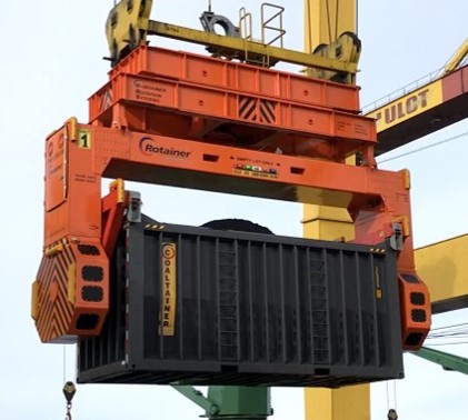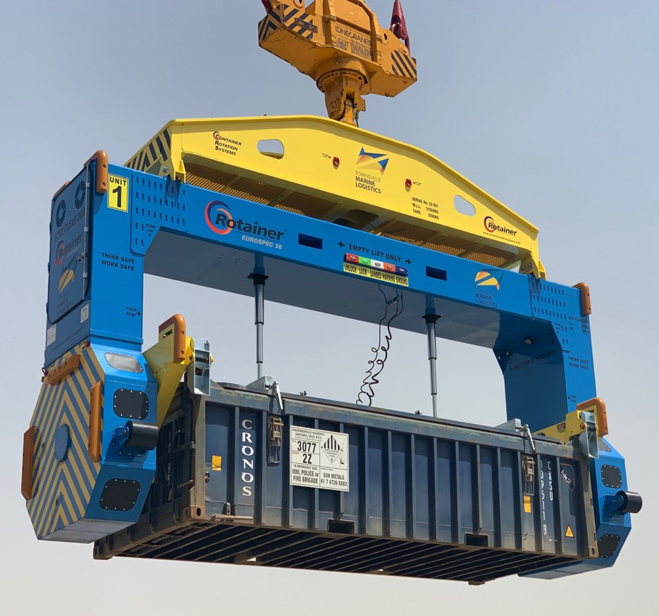 Recientemente lanzado al mercado global es la Rotainer® RS Este diseño único ' patentado ' es el primer rápido lanzamiento del mundo en tecnología y diseño, un sistema el cual cubre " Tres en Uno" del Sistema de rotación de recipientes para los Reachstackers , Top Elevadores Ascensor , Barcos de engranajes y terminales marítimos de contenedores.